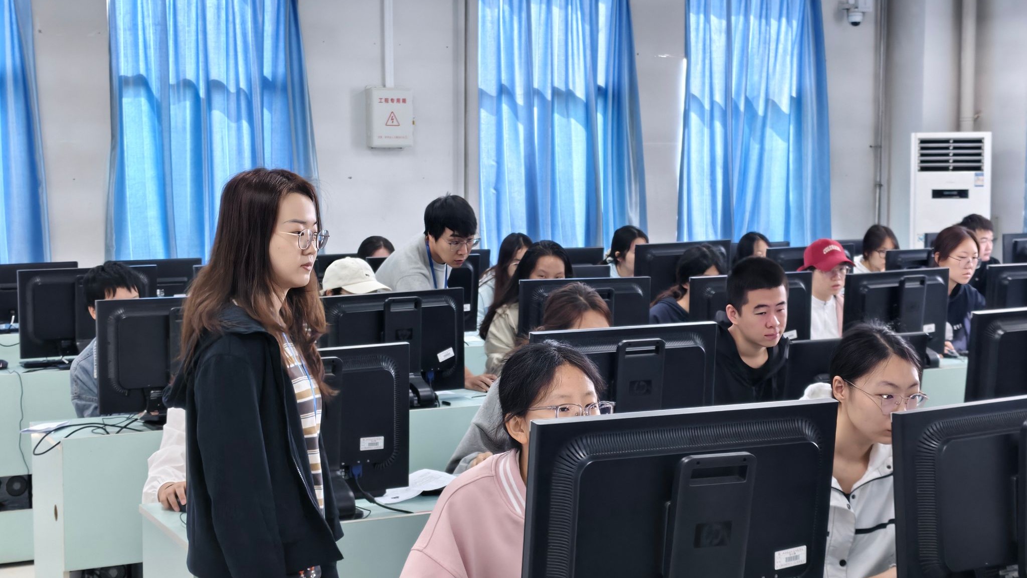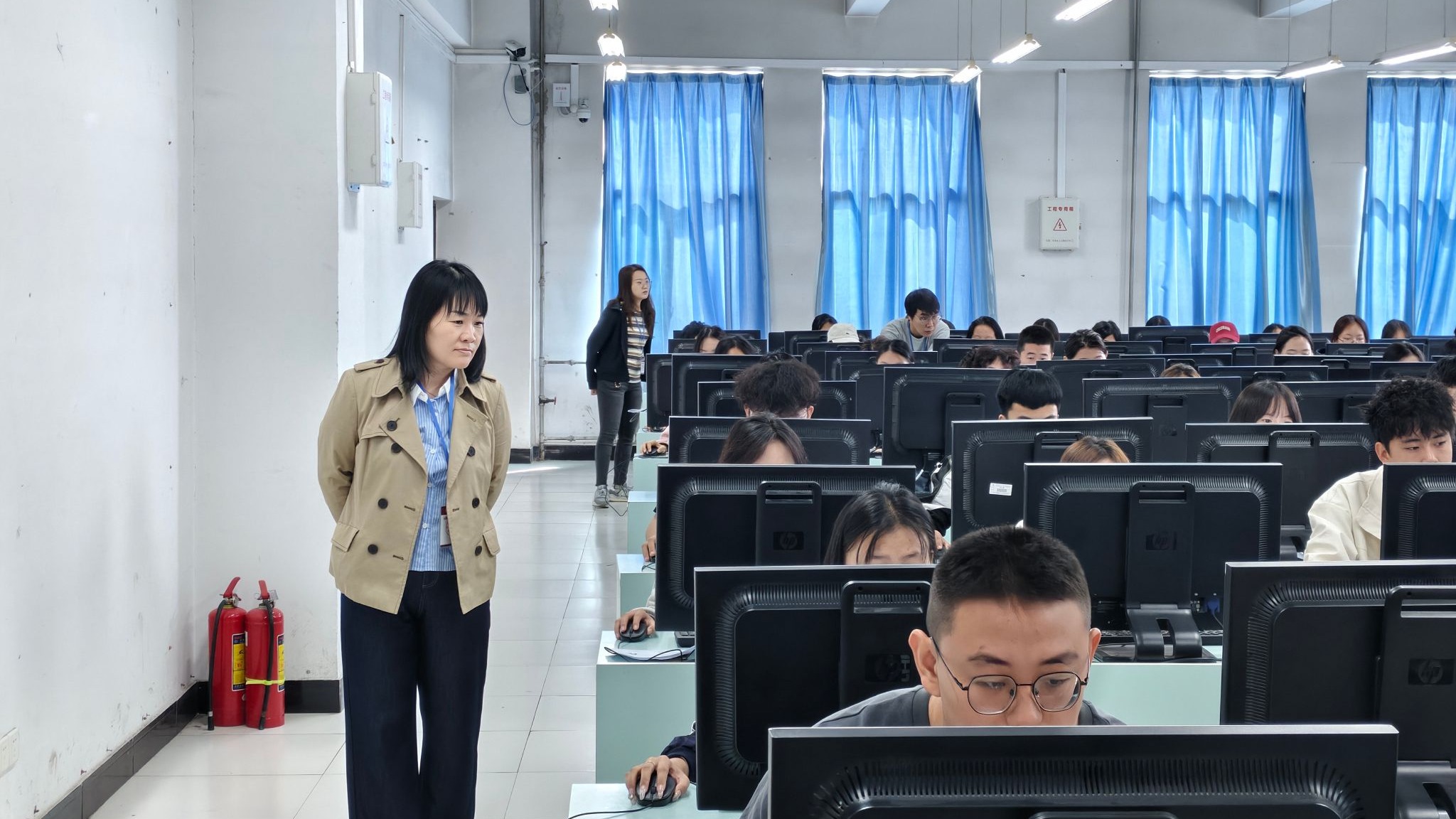 考试期间,各部门各司其职、紧密配合,筑牢考试保障防线。安全保卫部门提前部署人力,在考区入口设置查验岗,借助电子安检设备排查通讯设备等违规物品,维护考场周边秩序;后勤服务中心安排专人负责考区电力保障,确保考试期间供电稳定,同时协调校医务室在考区设立临时医疗服务点,为考生提供及时的医疗支持;信息技术保障团队全程驻场值守,实时监控考场设备运行状态,第一时间响应并解决可能出现的技术问题;巡考工作组按批次对各考场进行巡查,监督考风考纪,保障考试公平公正。